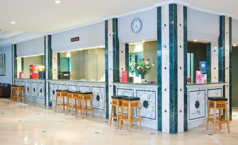 На територията на хотела: Основен ресторант L’Espadon, а ла карт ресторант Langoustine с италианска или тунизийска кухня (платен, едно безплатно посещение на престой, след предварителна резервация), лоби бар Saumon, бар Dauphin, бар басейн, плажен бар, мавританско кафене (срещу заплащане), нощен клуб (срещу заплащане), 24 часова рецепция, 2 открити басейна, 1 закрит басейн, 5 тенис корта, обменно бюро, магазини, конферентна зала, анимация.