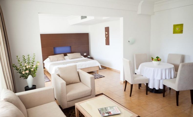 В стаите: Хотелът разполага с общо 800 стаи, разположени в основна сграда и бунгала.Standard Room/ Main Building (24 кв.м), Bungalow (20 кв.м), Suite Junior (38 кв.м с Wi-Fi). Основната сграда разполага с асансьор. Всички стаи са оборудвани с климатик, телевизор, баня с душ вана, минибар (празен), сешоар (на запитване и срещу депозит), тераса или балкон. Почистване на стаите - всеки ден.