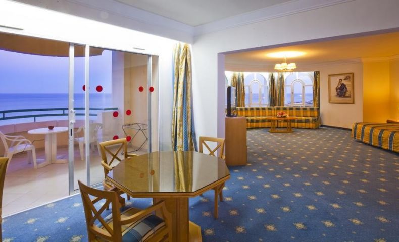 В стаите: Хотела разполага с общо 395 стаи, които са разположени в пететажна сграда с асансьор - Standard Room (25 кв.м), Sea View Room (25 кв.м), Suite Junior (52 кв.м с хол). Всички стаи са оборудвани с климатик, телевизор, баня с душ/вана, сешоар, мини бар (празен), балкон, сейф. Почистване на стаите - всеки ден.