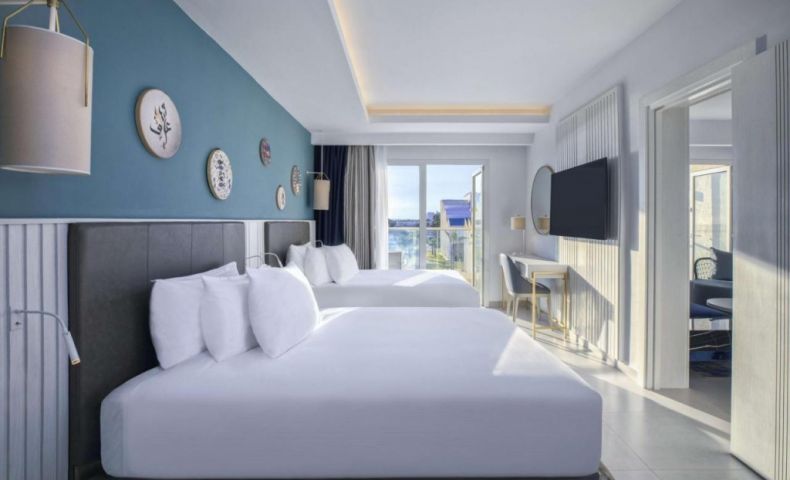 Типове стаи: Guest Room (34 кв.м), Guest Room Garden View (34 кв.м), Deluxe Room Partial Sea View (34 кв.м), Deluxe Sea Front Room (34 кв.м), 1 BR Deluxe Suite (73 кв.м със спалня и хол, с врата между тях, баня с душ и вана), 1 BR Deluxe Suite Sea Front (73 кв.м със спалня и хол, с врата между тях, баня с душ и вана), 1 BR Suite (59 кв.м със спалня и хол, с врата между тях и две бани), 1 BR Suite Pool View (59 кв.м със спалня и хол, с врата между тях и две бани), 1 BR Suite Partial Sea View (59 кв.м със спалня и хол, с врата между тях и две бани), 1 BR Suite Sea Front View (59 кв.м със спалня и хол, с врата между тях и две бани).