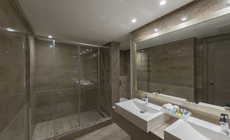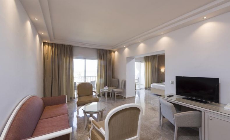 В стаите: Хотелът разполага с 520 модерно обзаведени стаи, разположени в отделни сгради с асаньори: Superior Garden View (26 кв.м), Superior Room Sea View (26 кв.м), Family Room (32 кв.м), Junior Suite Prestige (36 кв.м, представлява две двойни стаи с междинна врата), Suite Senior Prestige (52 кв.м, представлява две стаи разделени от арка). Всички стаи са оборудвани с климатик, телевизор, баня с душ/вана, сешоар, минибар (бутилирана вода, зарежда се ежедневно), сет за чай/кафе, сейф, Wi-Fi, балкон или тераса, тоалетни принадлежности, ютия (при запитане). Почистване на стаите - всеки ден.