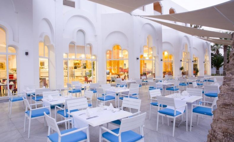 На територията на хотела: Основен ресторант, а ла карт ресторант (срещу заплащане, едно безплатно посещение на престой при предварителна резервация), лоби бар, бар басейн, бар до сцената за анимация, плажен снак бар, американски бар (срещу заплащане), мавританско кафене (срещу заплащане), външен басейн, открит басейн с морска вода, вътрешен басейн, анимация, 2 тенис корта, мини голф, 24 часова рецепция, конферентна зала и 4 зали за срещи, стая за багаж, сувенирен магазин, обменно бюро.