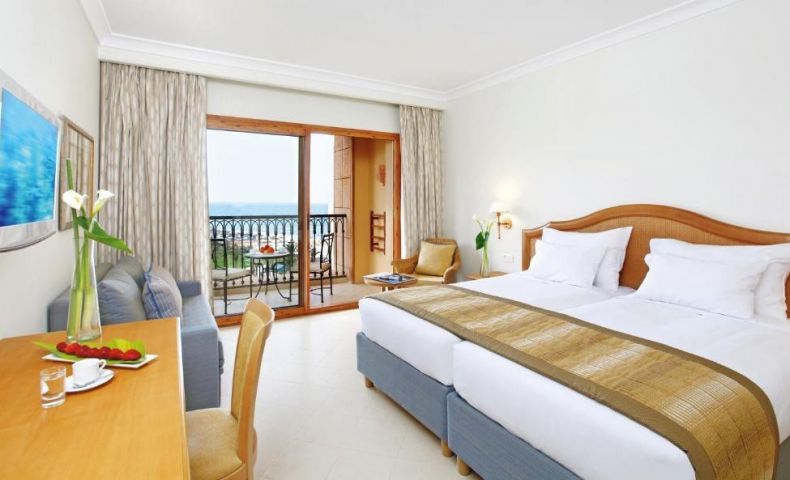 - Суит с изглед към морето - две стаи (спалня и хол), всяка стая с балкон, баня с вана и душ, изглед към морето и обща площ 65 кв.м