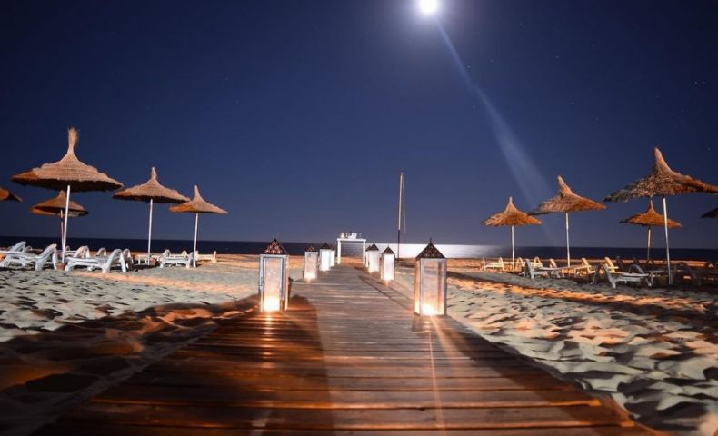 Разположение: Уникално местоположение между палмова горичка и кристално чисто море, красив пясъчен плаж и високо ниво на обслужване - идеален хотел за любителите на релакса и почивката. Хотелът се намира на 48 км от летище Енфида, на 8.5 км от центъра на Хамамет, на 3.1 км от Ясмин Хамамет, на брега на Средиземно море.