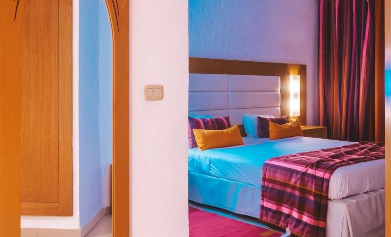 В стаите: Хотелът разполага с общо 214 стаи, разположени в триетажна сграда, от които Standard Room (30-34 m2) и Sea View Room (30-34 m2). Всички стаи са оборудвани с климатик, телевизор, телефон, баня с душ, сешоар, сейф (с депозит). Почистване на стаите и смяна на кърпите - всеки ден, смяна на спално бельо – 3 пъти в седмицата.