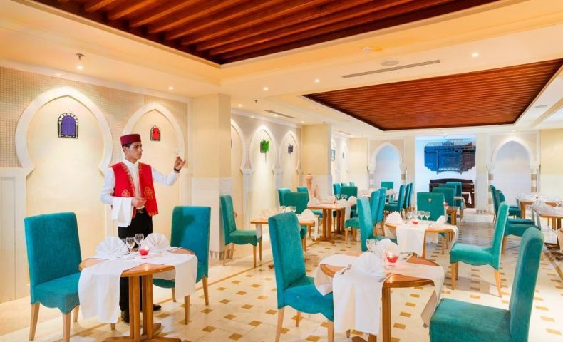 На територията на хотела: Основен ресторант Marhaba, а ла карт ресторант Bella Vita (платен, 1 безплатнo посещениe за престой при предварителна резервация), а ла карт ресторант Carthage с тунизийска кухня (платен, 1 безплатнo посещениe за престой при предварителна резервация), а ла карт ресторант Pecheur (платен, 1 безплатнo посещениe за престой при предварителна резервация), плажен ресторант (срещу заплащане), лоби бар с тераса, бар в басейна, плажен бар, лаундж бар Les Orangers, външен басейн с детска секция, вътрешен басейн, външен басейн с морска вода, 24 часова рецепция, Таласо център, сувенирен магазин, обмяна на валута, анимация, музика на живо.