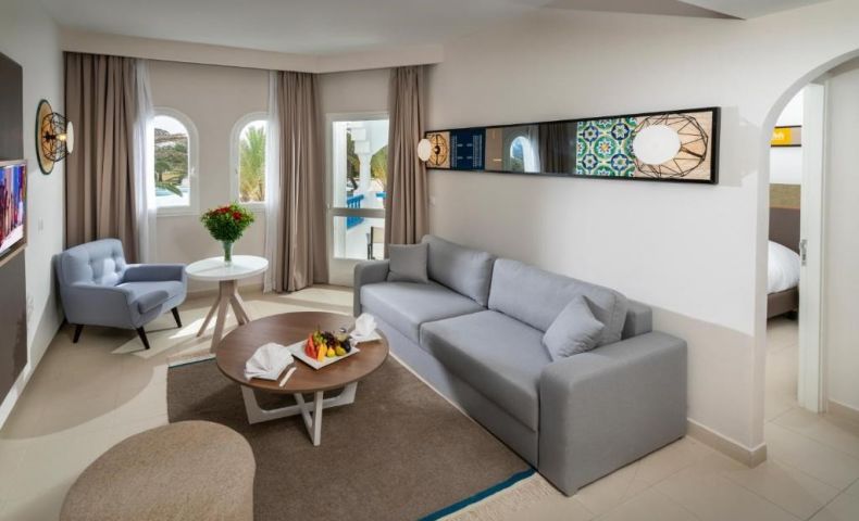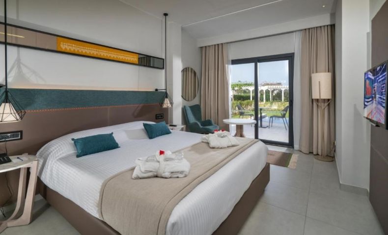 В стаите: Хотелът разполага с 322 стаи, разпределени в триетажна сграда (без асансьор) и комплекс от бунгала. Всички стаи са оборудвани с климатик, телевизор, телефон, баня с душ/вана, сешоар, минибар (срещу заплащане, на запитване), балкон или тераса, Wi-Fi, сейф, халати, тоалетни принадлежности. Почистване на стаите - всеки ден.