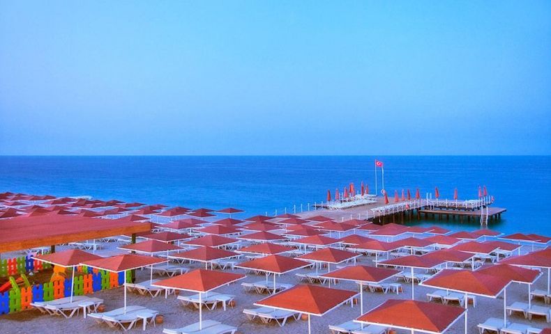 Плаж: Собствен, чакълест. Кей, оборудван с шезлонги и матраци. Чадъри, шезлонги и матраци на плажа и при басейна – безплатно. Плажни кърпи – безплатно. Кабани - срещу заплащане.