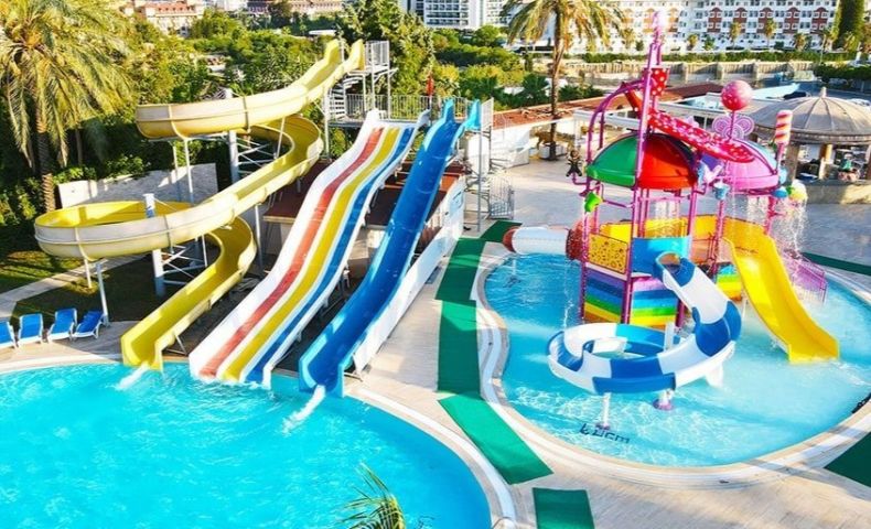 На територията на хотела: Основен ресторант, 2 а-ла карт ресторанта (османски, италиански - с предварителна резервация, за целия престой се позволява 1 посещение на един ресторант – безплатно с предварителна резервация от предходния ден, от 15.06-15.09), лоби бар, бар при басейна, дискотека, снек бар, водни пързалки, открит басейн, закрит басейн, СПА център.