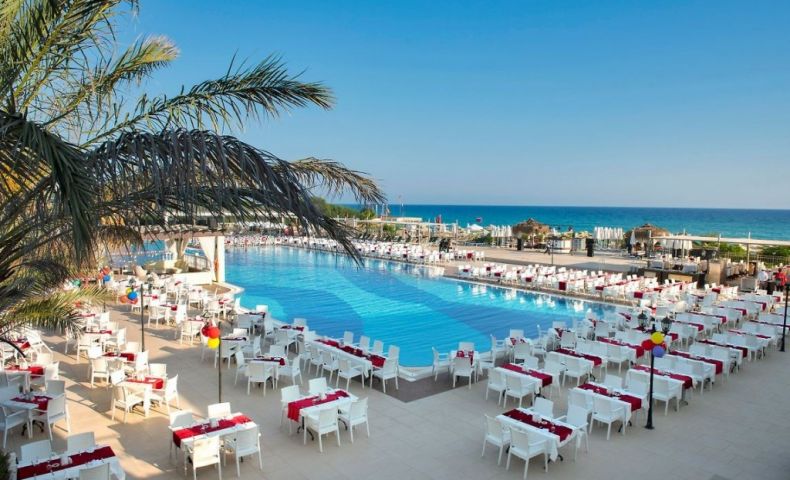 На територията на хотела: 24 часова рецепция, вътрешен основен ресторант, 3 A la Carte ресторанта (турски, италиански, рибен - платени с предварителна резервация), 5 бара, 2 открити басейна, аквапарк, СПА център, фитнес зала (18+), паркинг.