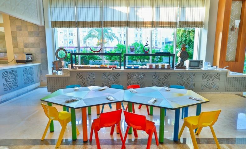 На територията на хотела: Основен ресторант, а - ла - карт ресторант (с предварителна резервация), 4 бара, 3 открити и 2 закрити басейна, водни пързалки, магазини, СПА център, дискотека, кино, конферентни зали, паркинг. За децата: Детска площадка, мини клуб (4-12 г.), 2 детски басейна – външен и вътрешен, водни пързалки, анимация.