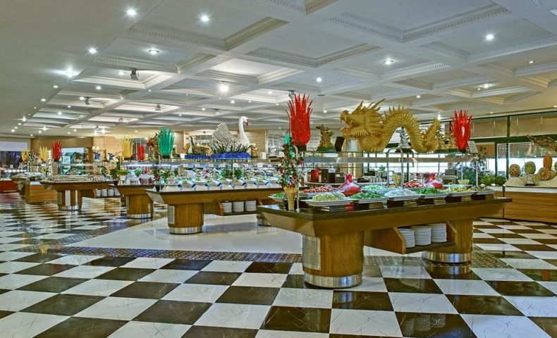 Ресторанти и барове: основен ресторант (07:00–03:00), ресторанти а ла карт с мексиканска, китайска, турска, италианска, средиземноморска и японска кухня (19:00–21:30), рибен ресторант (19:00–21:30), кафене "Ориент" (09:00–23:00), лоби бар (09:00–02:00), снек бар "Фантазия" (10:00–18:00), бар край басейна (10:00–18:00), пъб "Делфин" (15:00–07:00), бар "Арена" (20:00–23:00), витаминен бар (09:30–18:00), бар на плажа (10:00–18:00), бар "Харем" (20:30–00:00), бар "Млечен шейк" (11:00–12:00 и 14:00–15:00), Gatden Secret Bar (11:00–01:00), Pier Bar (20:30–00:00), Temple Bar (18:00–00:00), Relax Bar (10:00–18:00) и Atlantis Disco Bar (22:30–02:00).