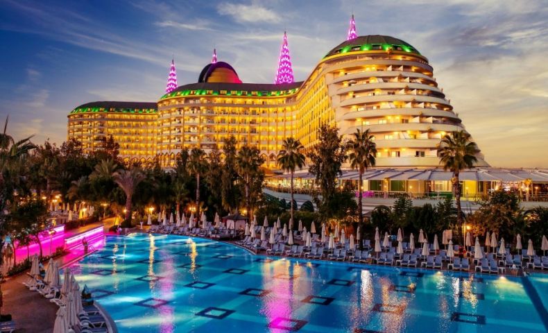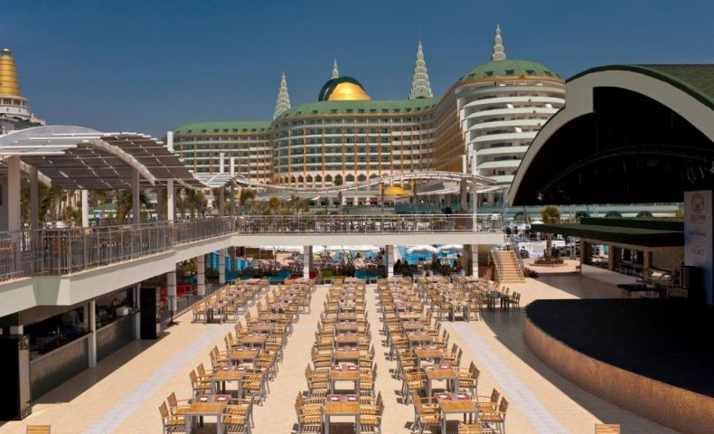 На територията на хотела: Основен ресторант, 8 а - ла - карт ресторанта (италиански, френски, гръцки, мексикански, далекоизточен, османски, рибен, ресторант месо и вино - с предварителна резервация, при минимум 7 нощувки - безплатно), 5 бара, 3 открити (оновен, релакс и с пързалки) и 1 закрит басейн, дискотека, аквапарк, лунапарк, СПА център, магазини, конферентна зала, Wi-Fi (безплатен).