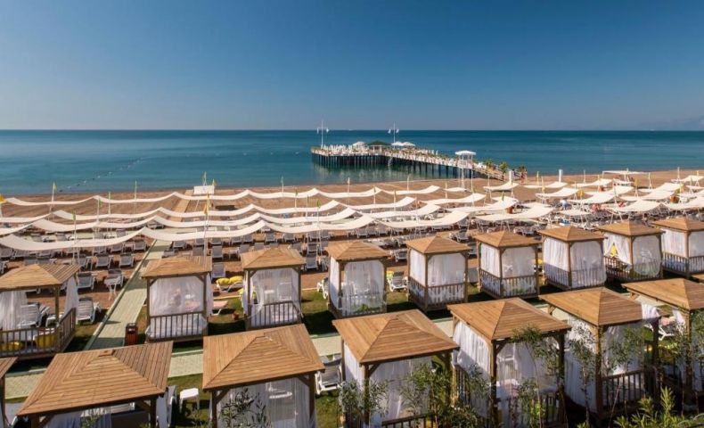 Разположение: Намира се на 15 км. от летище Анталия, на 10 км. от центъра на Анталия, в района на Лара, на брега на морето. Посторен през 2012 г., с обща площ 54.000 м2., реновиран 2014 г.