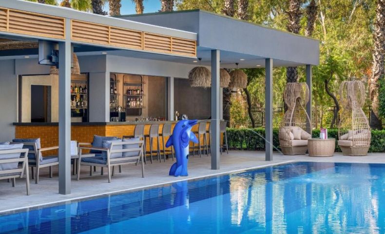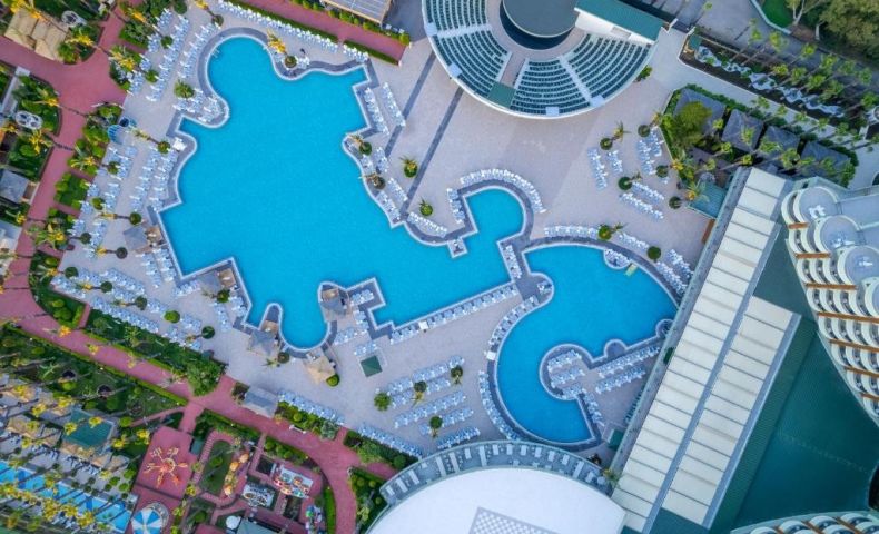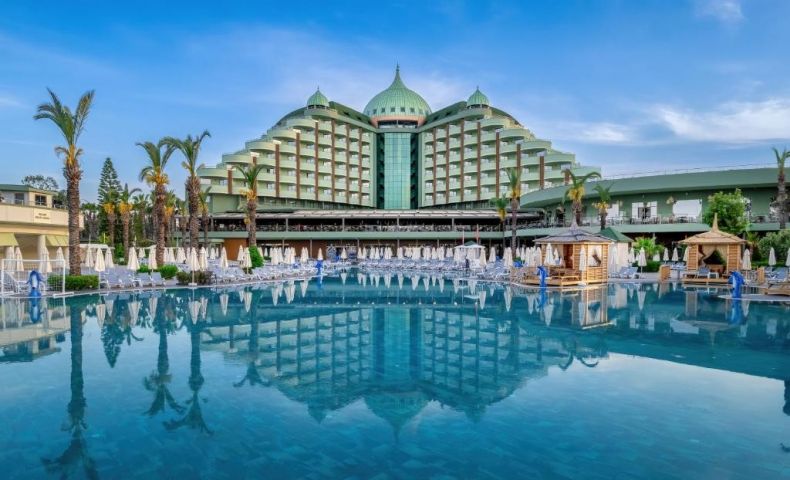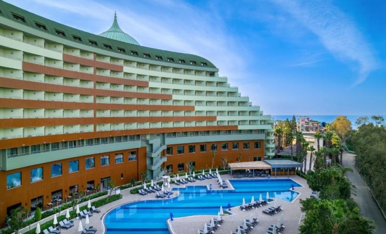 На територията на хотела: Хотелът предлага безплатен Wi-Fi във фоайето. Предлагат се и конферентни зали и амфитеатър под наем. Гостите могат да се възползват от медицинските услуги на хотела, обмяна на валута, паркинг, коли под наем, салон за красота, магазини и пералня. Освен това има открити и закрити басейни с различни размери, включително басейн с пързалки. Основният ресторант "Делфин" е отворен от 7:00 до 21:00 часа. Ресторантите а ла карт предлагат разнообразие от кухни, включително турска, италианска, японска, китайска, мексиканска, гръцка и рибна кухня. Те са отворени от 19:00 до 21:30 часа. Хотелът разполага още с кафене Avanti, лоби бар, бар Joia, бар край басейна и снек бар Palm. Диско барът е отворен от 23:00 до 02:00 часа.