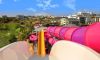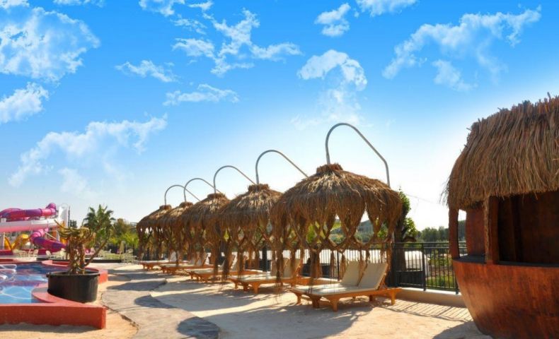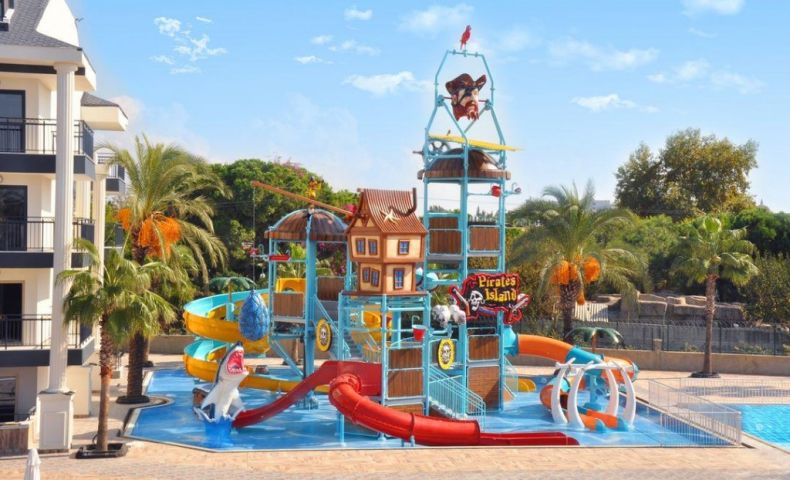 Хотелът разполага с основен ресторант с живописна тераса и 3 Ala Cart ресторанта (само с предварителна резервация, при възможност). Тук можете да намерите различни барове, множество магазини, нощен клуб, фризьорски салон и модерен здравен спа център. На място има безплатен Wi-Fi. Навън има голям брой басейни с чиста вода, както и RELAX басейн за гости над 18 години. Хотелът разполага с голям аквапарк за възрастни и аквапарк за деца с отделни пързалки, както и барове на басейна. Красивият пясъчен плаж е идеален за семейства с деца. Бар на плажа, включени шезлонги и плажни кърпи.