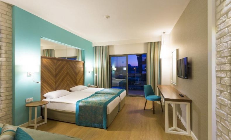 Изхранване: Ultra All Inclusive - Закуска, Късна закуска, Обяд и вечеря с богат бюфет. Среднощна супа и закуска. Тематични бюфети в определени дни от седмицата. Снек бар, ресторант на плажа, Следобедно кафе и торта. Алкохолни и безалкохолни напитки местно производство и някои вносни алкохолни напитки. Минибар в стаята с местни безалкохолни напитки, който са презарежда се ежедневно. * Прясно изцедени плодови сокове, някои вносни алкохолни и безалкохолни напитки, коктейли и бутилирани напитки се заплащат допълнително. Два а-ла-карт ресторанта: Турска кухня "Султан" и Средиземноморска кухня "Turkuaz" (с резервация / срещу допълнително заплащане).