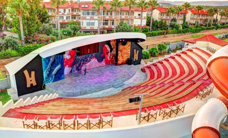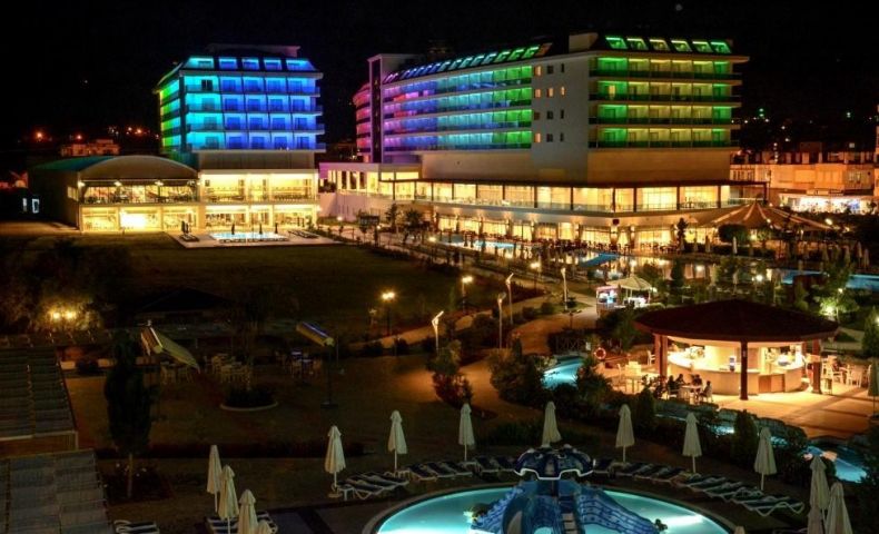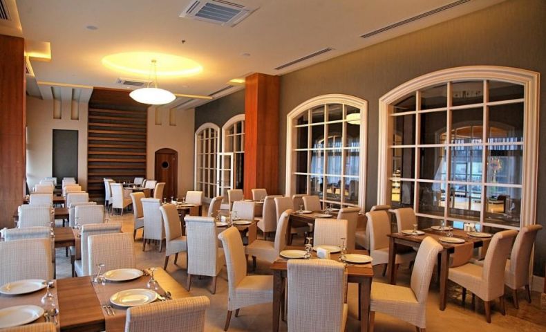 На територията: основен ресторант, 2 ресторанта а ла карт (османски и рибен - с предварителна резервация, едно безплатно посещение на един от ресторантите за целия период на настаняване), 4 бара, дискотека, 2 открити басейна, 5 водни пързалки, лекарски кабинет, фитнес център, фризьорски салон, магазини, химическо чистене, 3 конферентни зали.