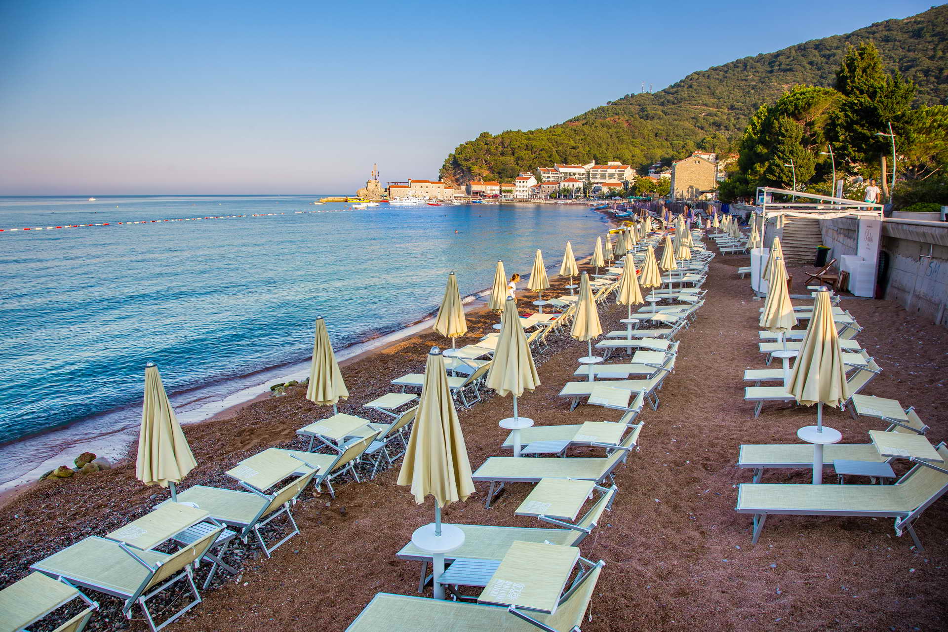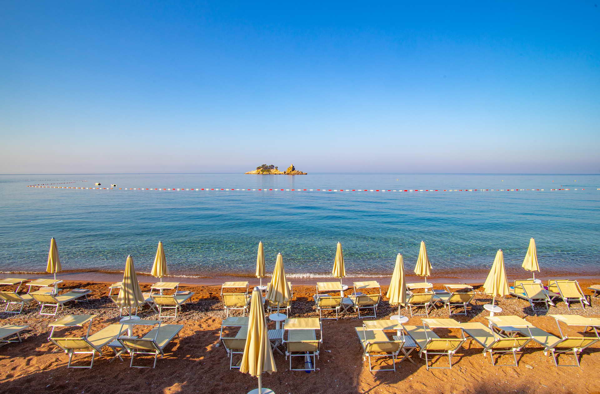 Собствен плаж на 50 м от хотела. Чадъри и шезлонги на плажа и при басейна - безплатно.