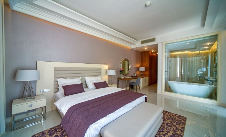 Хотелът разполага общо със 151 стаи. Всички стаи са оборудвани с климатик, телевизор, телефон, баня с душ/вана, сешоар, мини бар (платен), Wi Fi, сейф. Почистване на стаите и смяна на кърпите - всеки ден, смяна на спалното бельо - 2 пъти в седмицата.