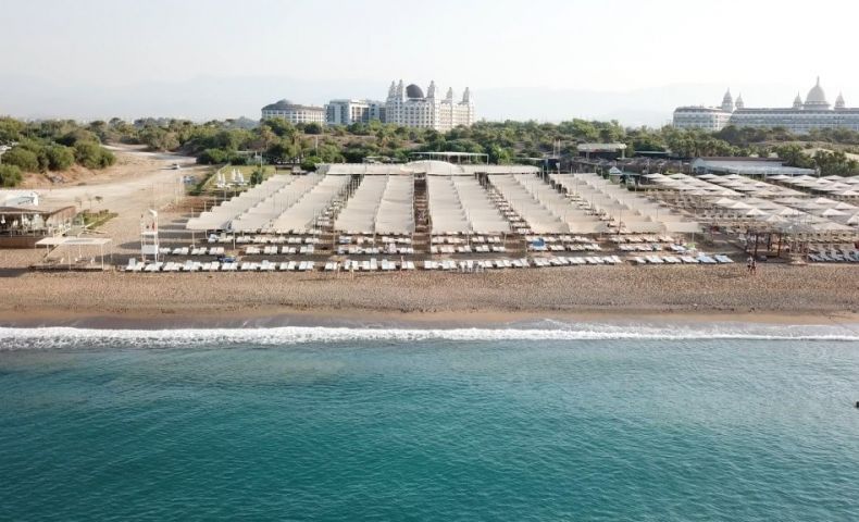 Плаж: Собствен, пясъчно-чакълест на 250 м с безплатен шатъл. Бар на плажа: безплатно. На басейна и на плажа: чадъри, шезлонги, матраци - безплатно. Плажни кърпи - безплатно.