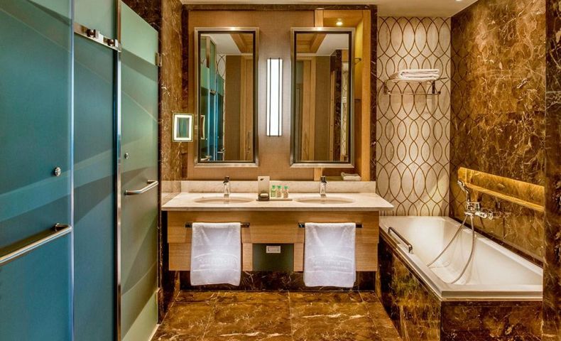 В стаите: Климатик, телевизор, телефон, мини-бар (безалкохолни напитки и бира – зареждане всеки ден, безплатно), сейф електрическа кана, набор за приготвяне на чай/кафе, ютия и дъска за гладене, вана и душ, сешоар, плажна чанта, чехли, 5 вида възглавница, балкон /тераса, почистване на стаята – всеки ден, смяна на спалното бельо – всеки ден, смяна на кърпите – всеки ден, интернет, room service: денонощно (платено)