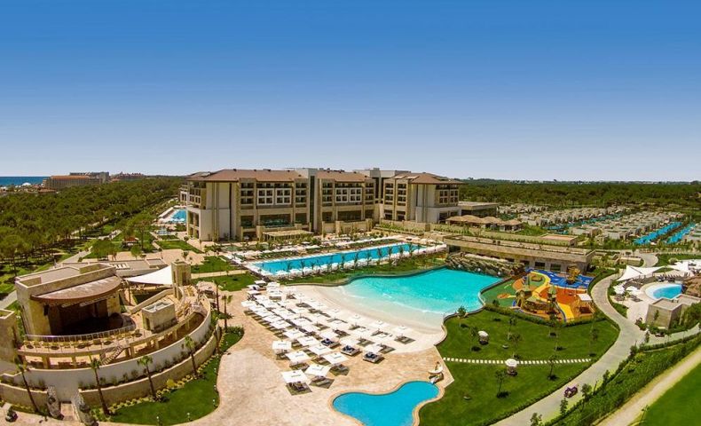 На територията: 2 ресторанта (единия от тях е за гости над 15 год.),диетично меню, 4 ресторанта a-la-carte (турски, италиански, далекоизточен, рибен, с предварителна резервация, резервацията се заплаща), 9 бара ,5 басейна (1 басейн за сърфинг), закрит басейн, 7 водни пързалки, Кинотеатър, лекарски кабинет, SPA център, фризьорски салон, магазини, химическо чистене, обмяна на валута, наем на автомобили, паркинг, конферентни зали (за 280-2100 чов.), Wi-Fi безплатно