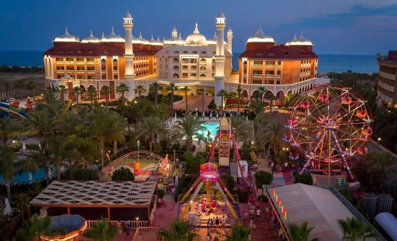 На територията на хотела: Основен ресторант, 3 а - ла - карт ресторанта (с предварителна резервация), 8 бара, 6 открити и 1 закрит басейн, 3 водни пързалки, магазини, SPA център, нощен клуб, конферентна зала. За децата: Детско меню, детски площадки, мини клуб (4-12 г.), 2 детски басейна, водни пързалки, мини дискотека, анимация, лунапарк, зоопарк. Безплатни услуги: Турска баня, сауна, фитнес, дартс, тенис на маса, плажен волейбол, аеробика, жива музика, анимация, интернет (в лоби). Платени услуги: Масаж, център за красота, фризьор, магазини, билярд, боулинг, интернет кафе, компютърни игри, химическо чистене, лекар, детегледачка, водни спортове, уроци по тенис, тенис на корт с осветление, скоростен интернет.
