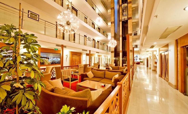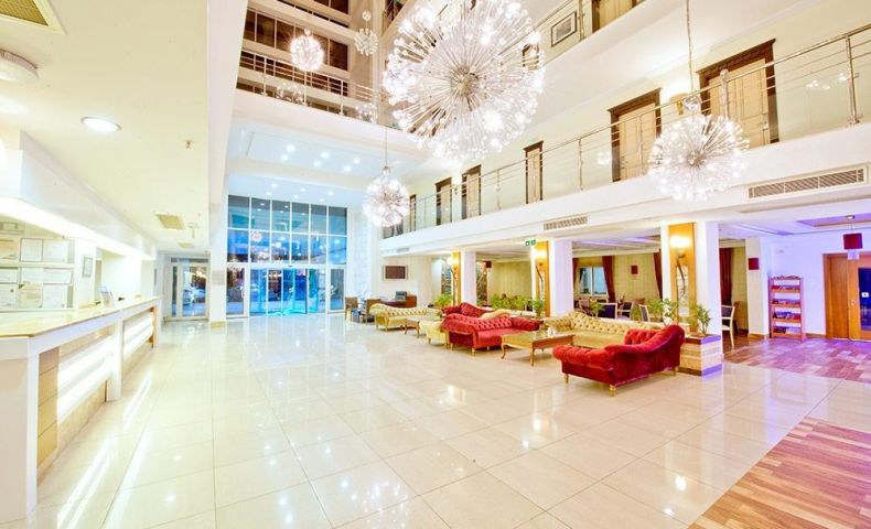 В стаите: Хотелът се състои от 240 стаи. Всички стаи са оборудвани с: вана, сешоар, централен климатик, телефон, телевизор, мини бар (вода – зареждане всеки ден, безплатно), балкон, сейф (платено), балкон. Почистване на стаята – всеки ден, смяна на спалното бельо – 3 пъти седмично.