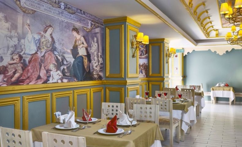 На територията на хотела: СПА, фитнес център, 2 басейна за възрастни, 2 детски басейна с пързалки, различни спортове и анимации- аеробика, водна гимнастика, дартс, тенис на маса. Вечерна анимация- дискотека, жива музика, фолклорни и тематични вечери. Италиански, турски и интернационален ресторант, кафене, снек бар на плажа и до басейна, нощен бар.