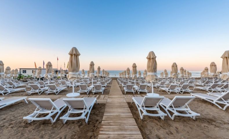 Плаж: Собствен, пясъчен. Бар на плажа - безплатно. При басейна и на плажа - чадъри, шезлонги, матраци безплатно. Плажни кърпи: безплатно.
