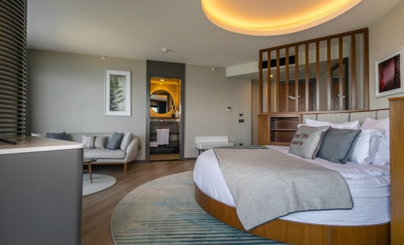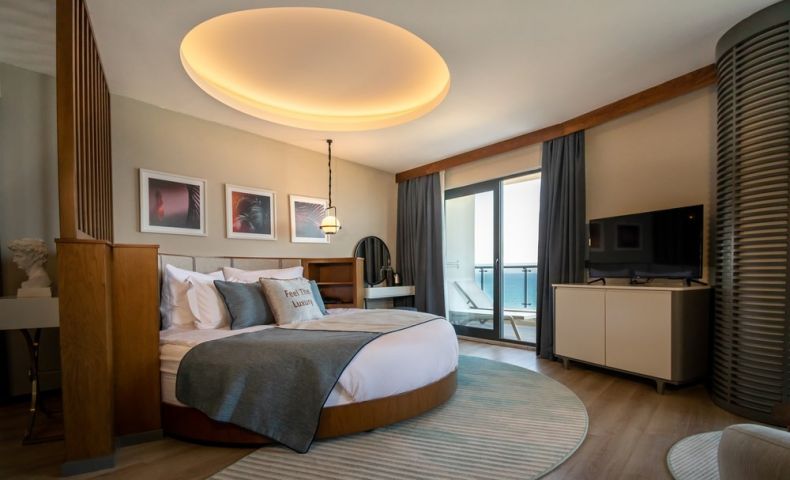 В стаите: Хотелът разполага с 356 стаи, разположени на 9 етажа и обслужвани от 6 асансьора. Типовете стаи са следните: Standard Land View ( 35-40 m2 ), Standard Side Sea View ( 35-40 m2 ), Standard Sea View ( 35-40m2 ), Standard Sea&Pool View ( 35-40 m2 ), Standard Swim up ( 35-40 m2 ), Standard Deluxe ( 38 m2 ), Family with 1 Bathroom ( 40 m2 ), Family with 2 Bathroom ( 50 m2 ). Всички стаи са оборудвани с телефон, LCD телевизор, сешоар, баня с душ, мини бар, сет за кафе и чай, сейф, климатик, балкон, чехли и халат, настилка – ламинат.