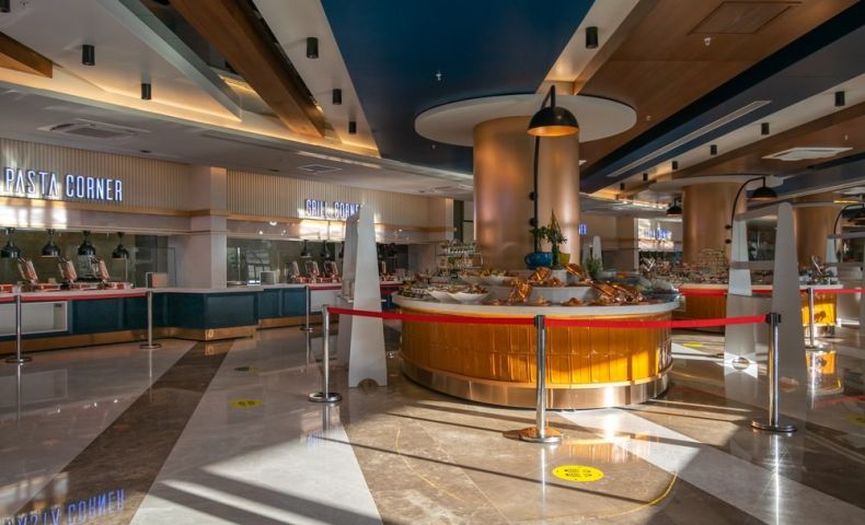 На територията на хотела: Основен ресторант, диетично меню, 3 ресторанта a - лa – карт (международен, турски, италиански), лоби бар, бийч бар (работи в зависимост от климатичните условия), сладкарница, дискотека, Wi-Fi интернет, открит басейн, закрит басейн, СПА център, фитнес, 2 конферентни зали.
