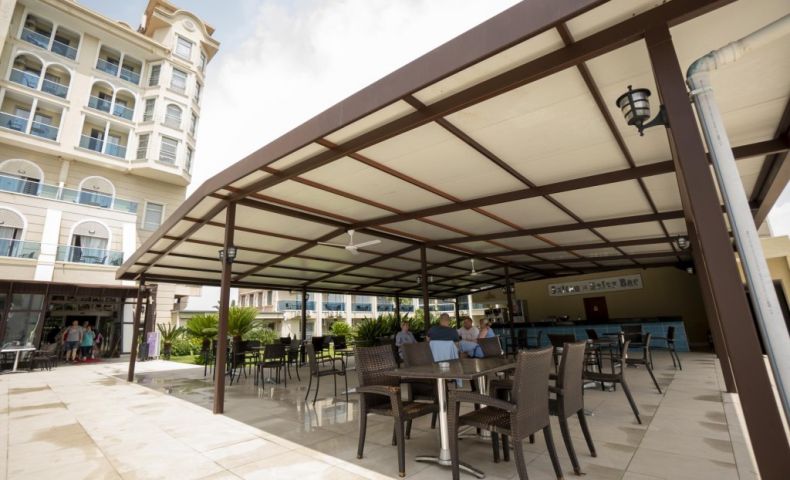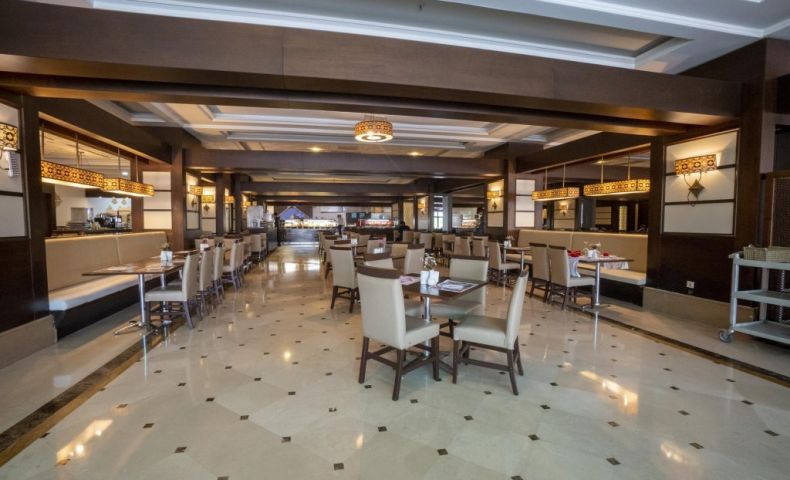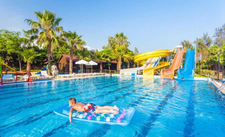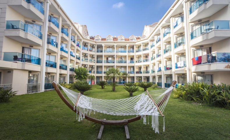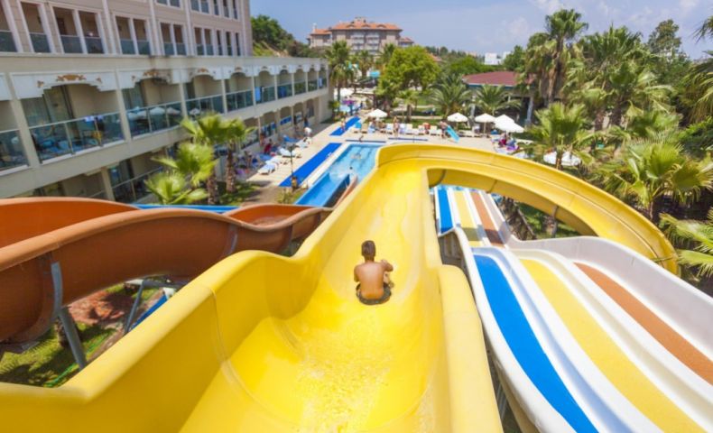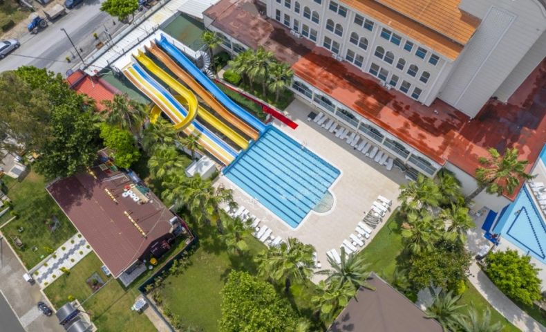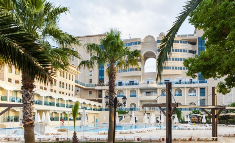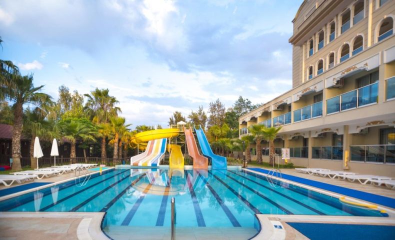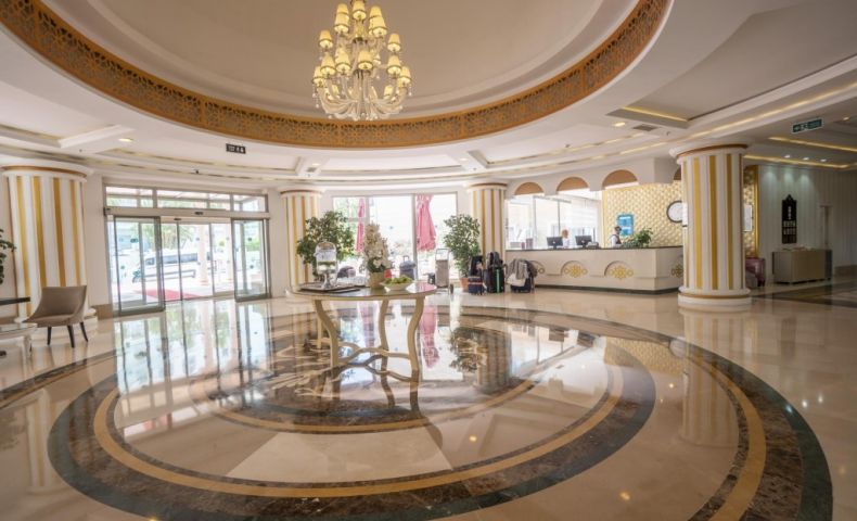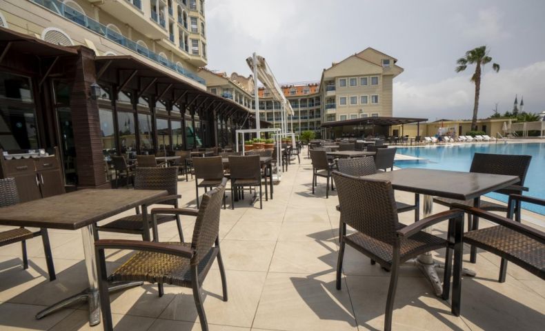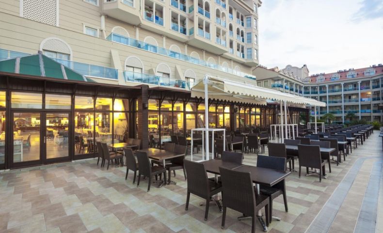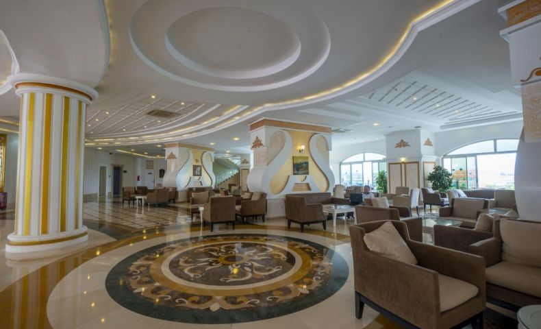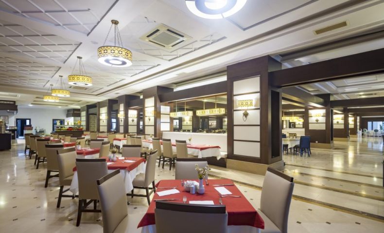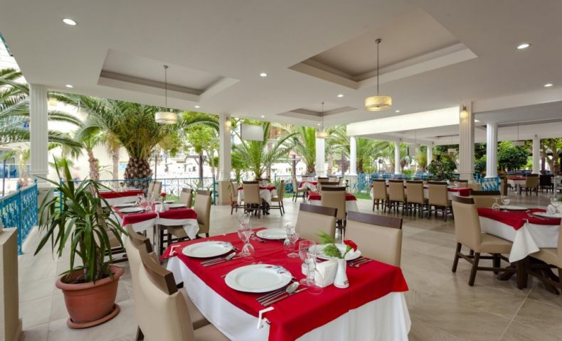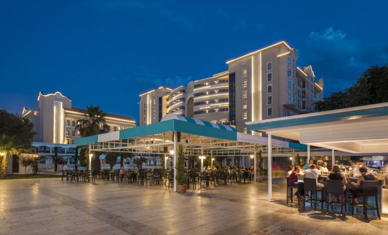 На територията на хотела: Денонощна рецепция, два открити басейна, един от които с 4 водни пързалки, вътршен басейн, основен ресторант, открита тераса, снек ресторант, 3 бара, 3 А Ла Карт ресторанта ( Рибен, турски и италиански – с предварителна резервация, срещу доплщане), СПА център, фитнес зала.