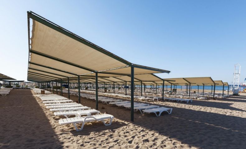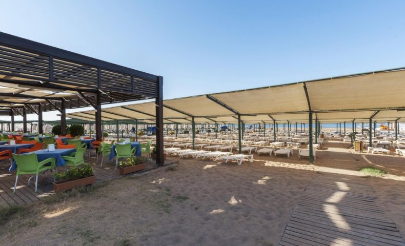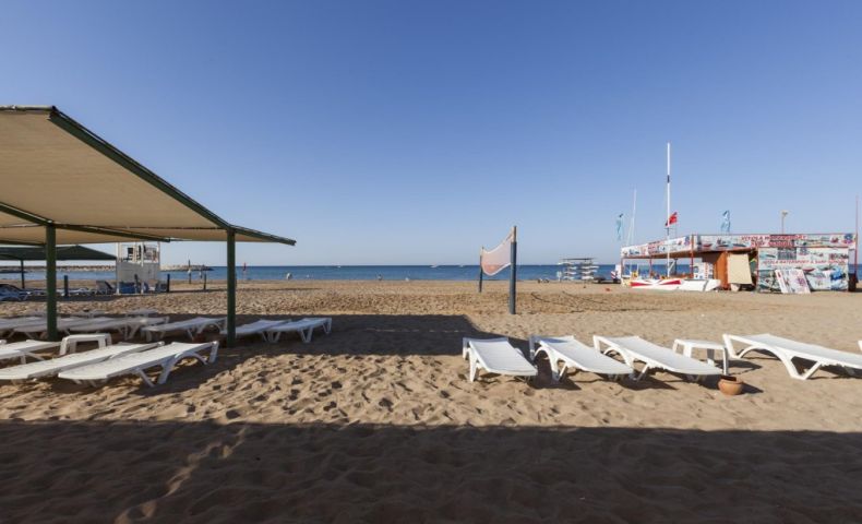 Плаж: Плажът е пясъчно-чакълест и е на около 250 м от хотела. Разполага с шезлонги и чадъри, кърпи за плаж и басейн, волейболно игрище, душ/WC, съблекални и снек бар. Сервират се алкохолни, топли и студени напитки, бюфет със салати и плодове, богата закуска и обеден бюфет.
