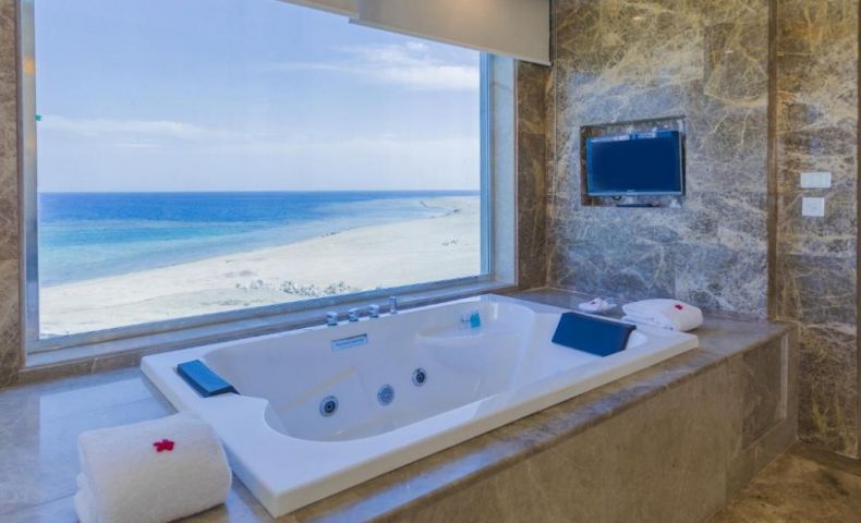 Плаж: Частен пясъчен и скалист плаж, понтон, корали в близост, пясъчен вход към морето, първа брегова линия. Препоръчват се специални обувки. Чадъри, шезлонги, матраци, хавлии – безплатно. Дължината на плажа е 600м.