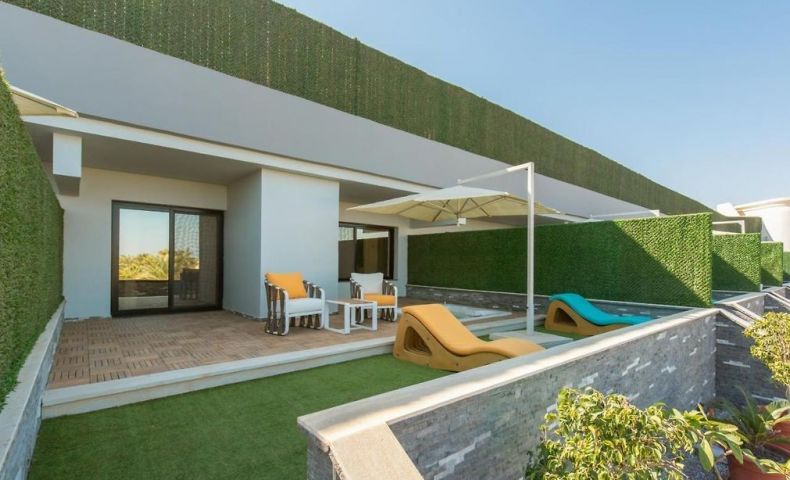 Плаж: ссобствен пясъчен плаж, има коралов риф наблизо, има пясъчен вход към морето, първа брегова линия. Чадъри, шезлонги, матраци, хавлии - безплатно. Дължината на плажа е 1100 м.