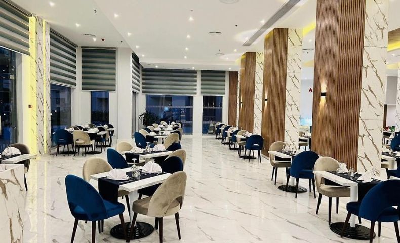 На територията на хотела: 6 басейна за възрастни (2 отопляеми през зимата), аквапарк за възрастни и деца от 10 години, без отопление през зимата, основнен ресторант Lotus, Ресторант Aldente само за възрастни, международен ала карт ресторант Podium, Италиански ала карт ресторант La Casina, Средиземноморски ала карт ресторант Zeta`s, Бар Waterdo близо до водния парк (10:00 до залез слънце), лоби бар Виена (24 часа), Aqua Lounge бар (10:00-00:00), бар до основния басейн (10:00 до залез слънце), плажен бар (10:00 до залез слънце), wi-fi в Aqua Lounge bar (безплатно)