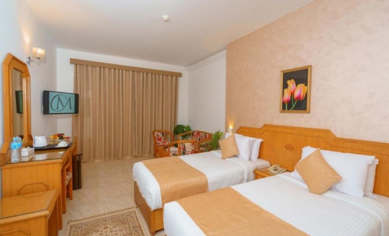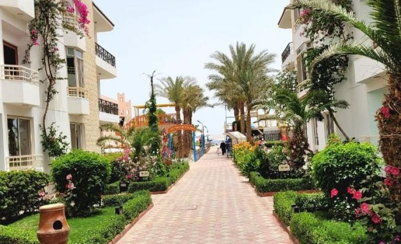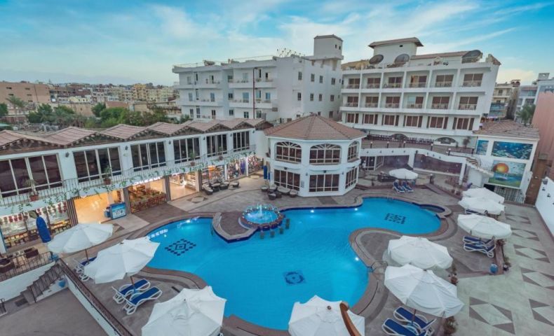 Разположение: Хотелът се намира в сърцето на развлекателния център на Хургада, в района Сакала. Разстояние до Сензо Мол: 17 км., Международно летище Хургада - 7 км. Непосредствено пред хотела се намира най-оживената улица - Шератон и Марина Променад с отлични дискотеки, ресторанти, магазини, развлекателни центрове и красива пешеходна зона. Хотелът се състои от основна 4-етажна сграда, допълнителна 4-етажна клубна сграда и четири 3-етажни сгради (с асансьор).