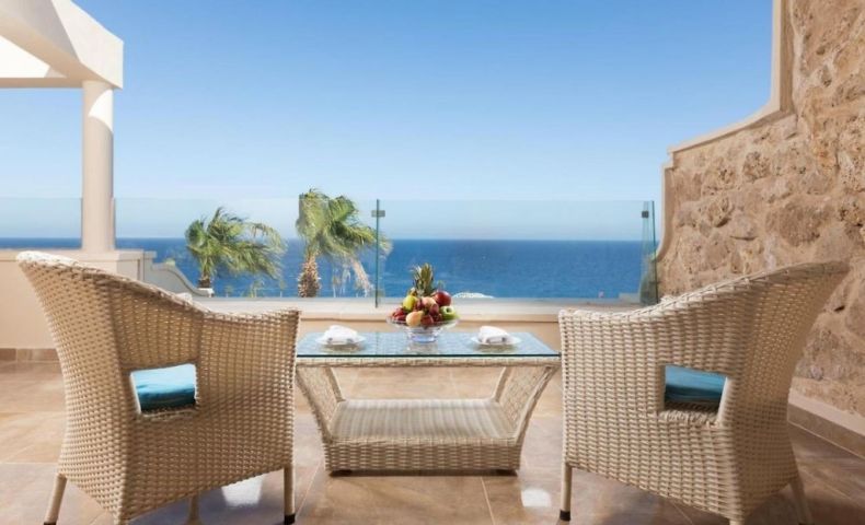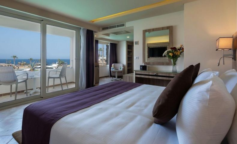 В стаите: Хотелът разполага с общо 550 стаи, разположени в 1 основна четириетажна сграда, и комплекс от дву- и четириетажни корпуси: Standart rooms (с изглед към морето – 57-64 м2), Deluxe rooms (с изглед към морето – 70 м2), Family rooms (2 спални, с изглед към морето 70 м2). Всички стаи са оборудвани с климатик, телевизор, телефон, баня с душ, сешоар, сет за чай/кафе, минибар (зарежда се с вода и безалкохолни напитки - безплатно), сейф, балкон, Wi-fi. Почистване на стаите и смяна на кърпи - всеки ден, смяна на спално бельо - 2 пъти седмично.