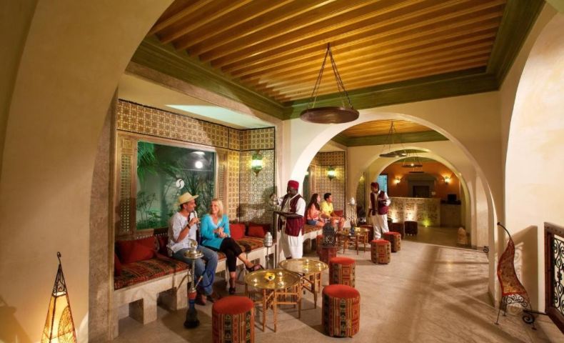 На територията на хотела: Основен ресторант El Kastil, а ла карт ресторант El Mahboubine (платен, едно безплатно посещение след предварителна резервация), лоби бар El May, бар на басейна, бар на плажа, мавританско кафене, външен басейн (отопляем през зимата), СПА център. Дневна, вечерна и спортна шоу анимация.