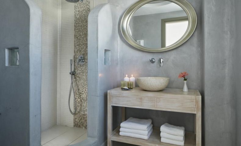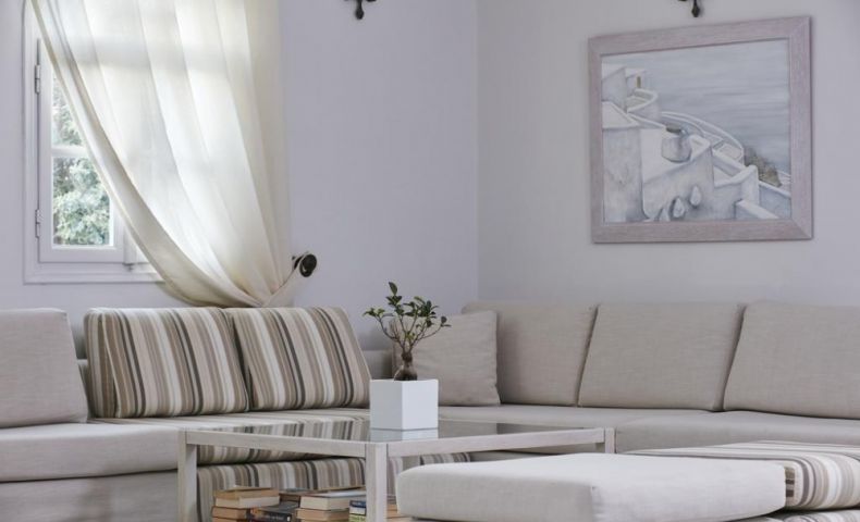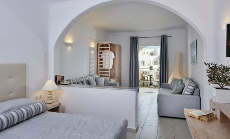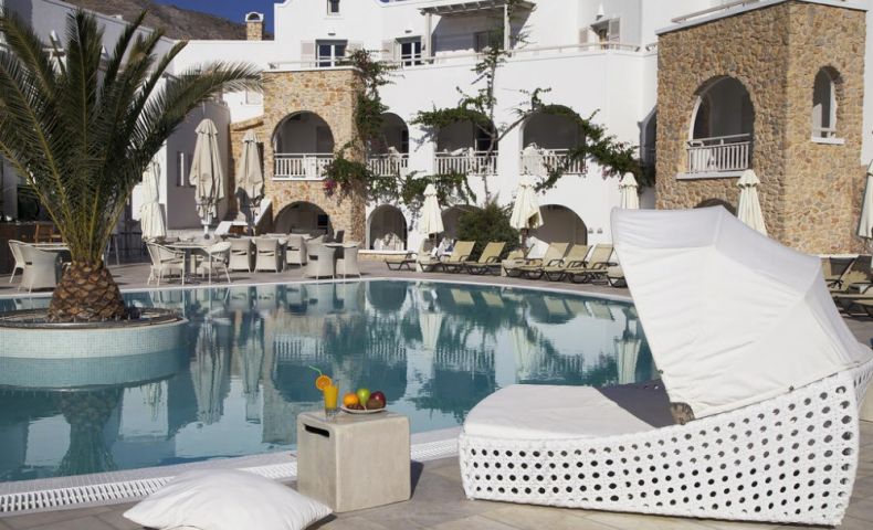 Хотелът се намира на 9 км от столицата Фира, в селището Камари, на 50 м. от брега на морето. Построен през 2001 - 2002 г. в традиционна цикладска архитектура и изцяло реновиран през 2014 г.