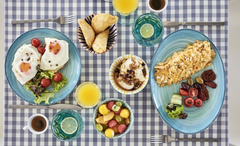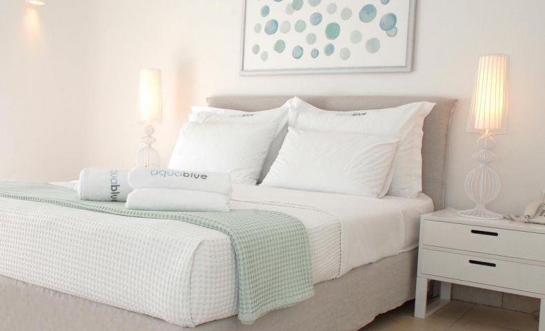 Стаите в Aqua Blue Beach Hotel са светли и модерно обзаведени и включват климатик, телевизор с плосък екран със сателитни канали, хладилник, собствена баня, балкон или вътрешен двор, прозорци с двоен стъклопакет и сейф.