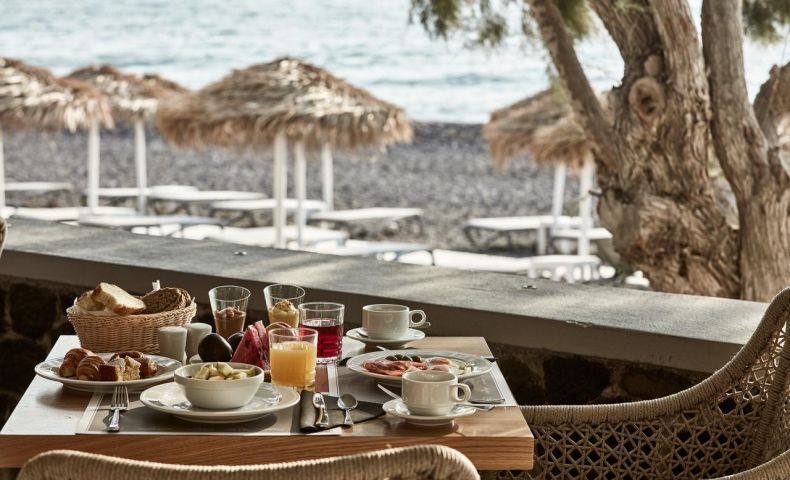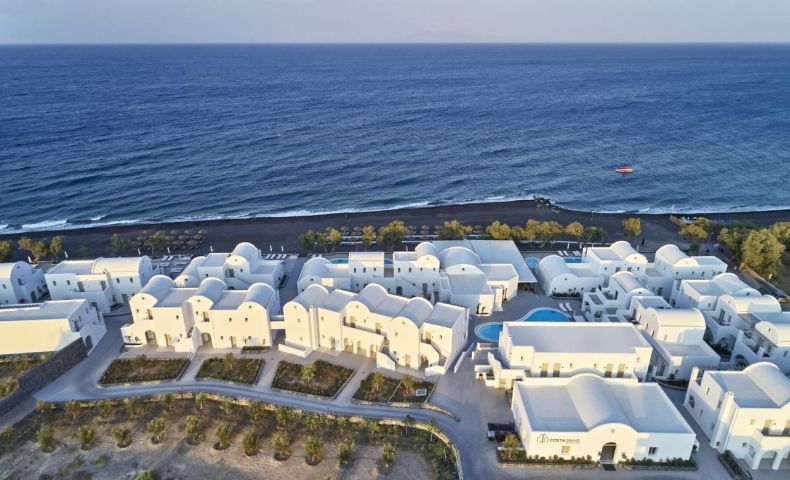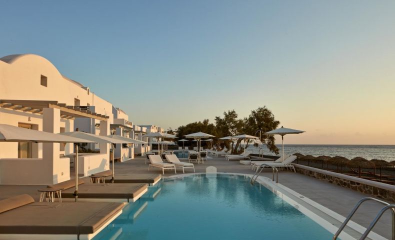 Costa Grand Resort & Spa се намира в Камари, на собствения си плаж с черен пясък. Летище Санторини (Тѝра) се намира на 4 км.