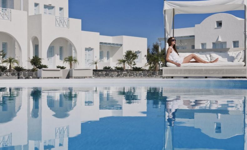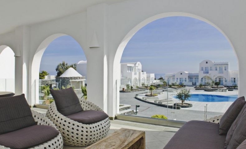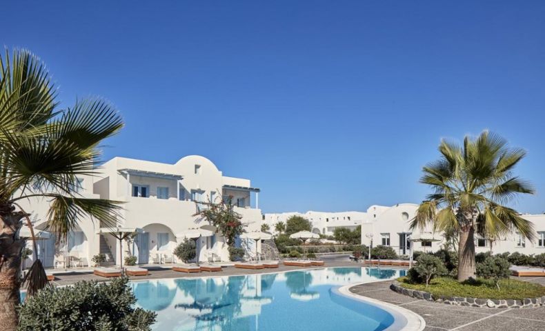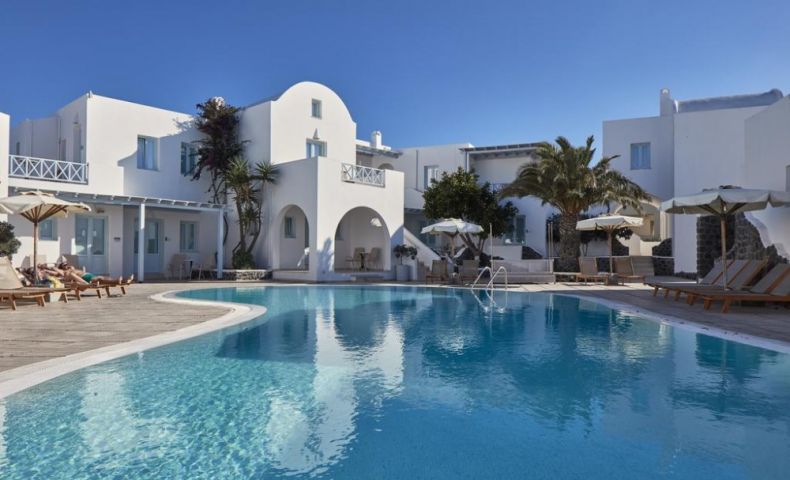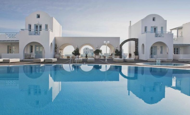 Хотелът се намира на 500 м. от центъра на столицата Фира, на 12 км. от Камари, на 14 км. от Периса, на 7 км. от брега на морето. Луксозен хотел, построен в изцяло традиционен цикладски стил. Комплекс El Greco Resort, прилича на малко селище с бели къщи. Разположен е на голяма територия и е идеален избор за луксозна семейна почивка. Автобусна спирка на 450 м. от хотела.