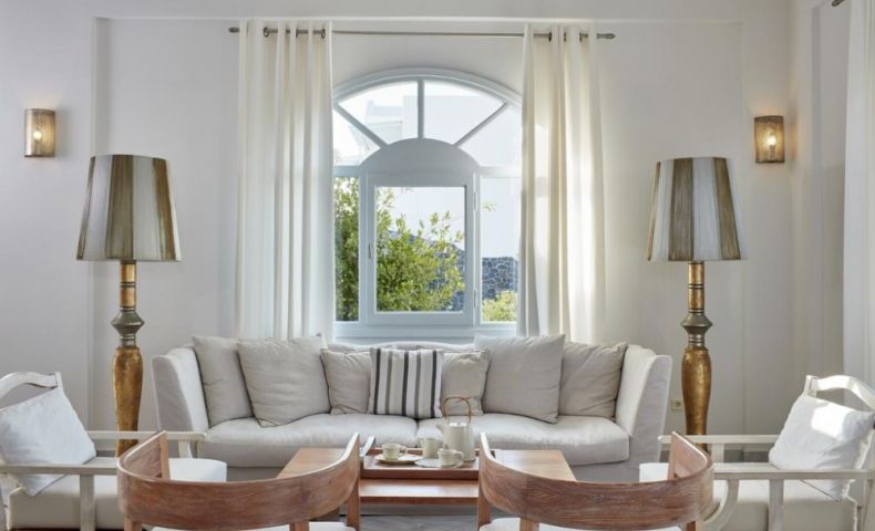 Основен ресторант, бар на басейна, снек бар, 5 басейна, 2 открити джакузита, СПА център, фитнес, ТВ кът, конферентна зала, коли под наем, интернет, лекар (на повикване), услуги пране и гладене, паркинг, безплатен Wi-Fi на територията на хотела. За децата: детски басейн. Плаж: На 15 км. от плаж Камари, на 7 км. от плаж Монолитос, на 14 км. от плаж Периса.