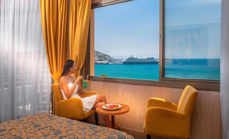 Местоположение: Хотелът се намира в сърцето на Кушадасъ, само на 90 километра от летище Измир, срещу морето.