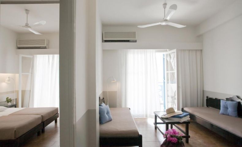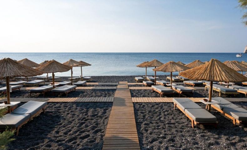 Хотелът се намира на 7 км. от летище Санторини, на 9 км. от столицата Фира, в района на Камари, на брега на морето.