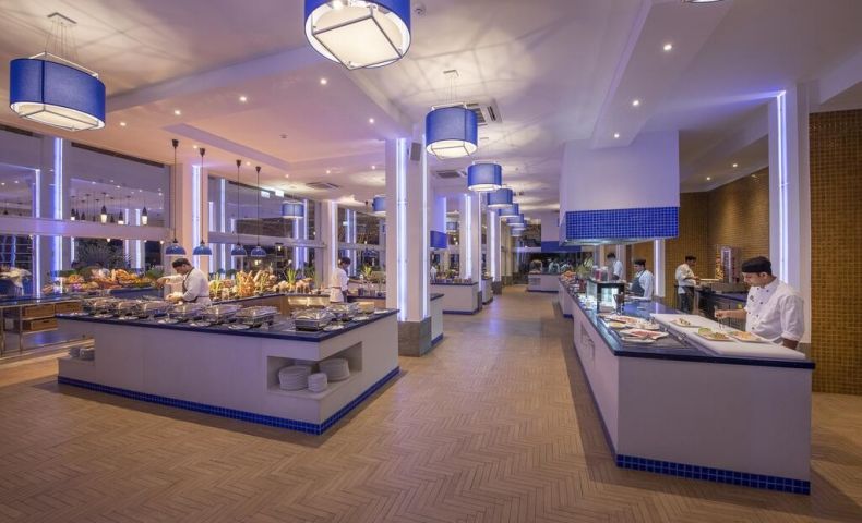 На територията: На териториата на хотела има 4 ресторанта(Азиатска, средиземноморска, японска, италианска, централна и южноамериканска кухня), барове/ бар, бар до басейна, бар на плажа/, семейни стаи, спа център, фитнес, възможности за различни водни спортове,тенис кортове, мини фyтболно игрище и детски клуб.