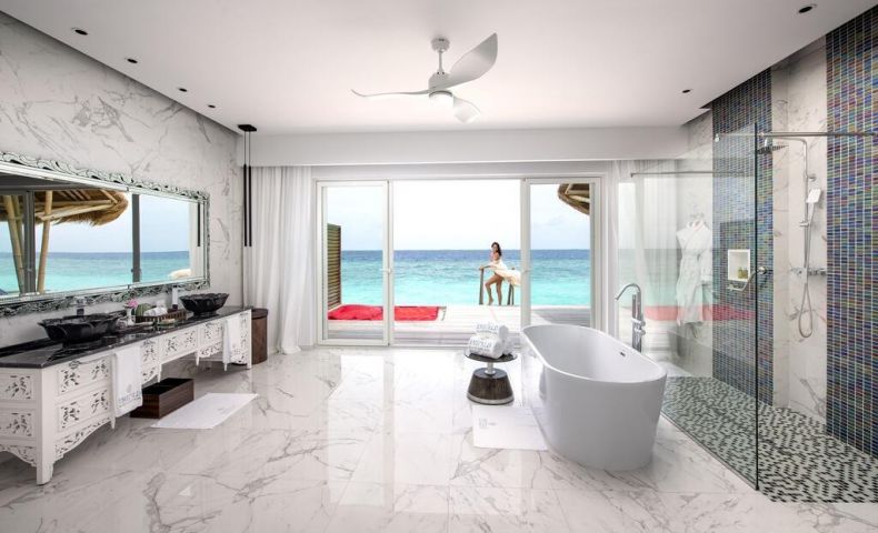 В стаите: Хотелът предлага над 120 прекрасни и луксозно обзаведени вили на брега или над водата. Всяка вила разполага със собствен басейн или джакузи. В дворното пространсво има открита баня. Всички вили са модерно обзаведени с всичко необходимо за една луксозна почивка: два плоски телевизора (в стая и баня), телефон с директно избиране, двойно легло, свързани стаи, модерни климатизирани бани с душ кабина, външен душ „под звездите“, вана за двама, отделна тоалетна и биде, съблекалня и гардероб, сешоар, халати, личен сейф, съоръжения за приготвяне на чай и кафе, ежедневно освежен минибар, обслужване на камериерка два пъти дневно, климатик, контролиран от стаята, вентилатори, работно бюро и Wi-Fi интернет достъп, който ще бъде на разположение и в целия курорт.